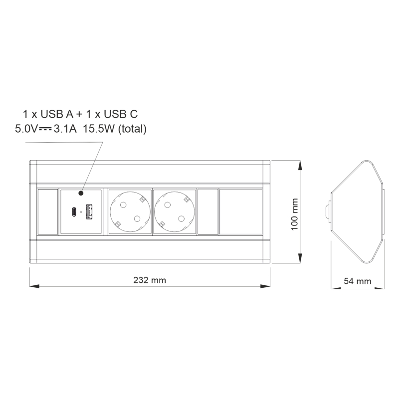 Nowoczesny przedłużacz narożny CORNERBOX-BI-2DE-UAC to praktyczne rozwiązanie do kuchni, biura oraz zabudowy meblowej. Montaż w narożniku pozwala wygodnie podłączyć kilka urządzeń jednocześnie i utrzymać porządek na blacie. Biała obudowa doskonale pasuje do jasnych, nowoczesnych wnętrz. Model wyposażono w dwa gniazda 230V oraz porty USB A i USB C do ładowania urządzeń mobilnych.
